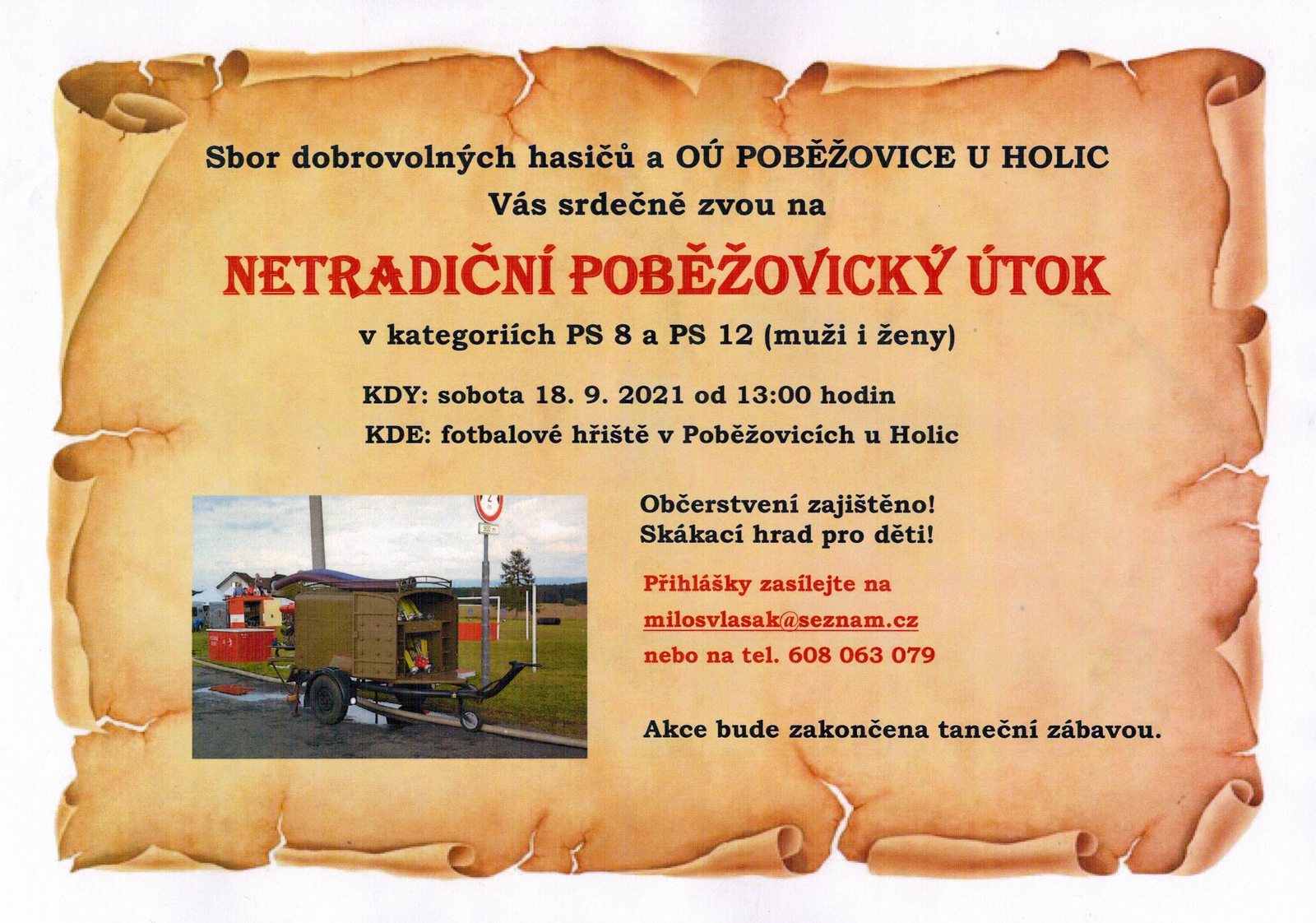 Dobrovolní hasiči obce Poběžovice u Holic zvou občany na hasičské závody. (viz.příloha)