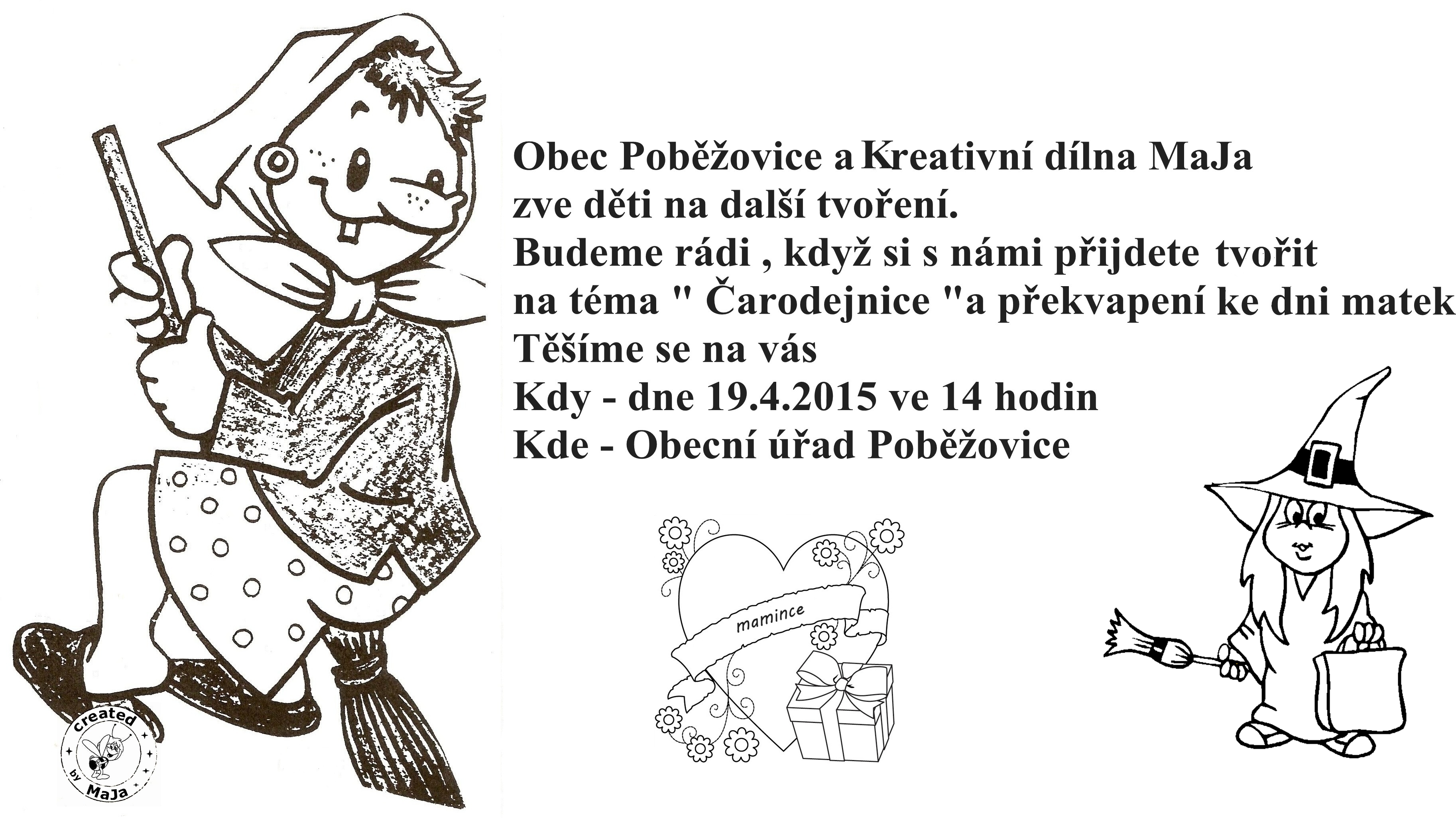 Obec Poběžovice u Holic a Kreativní dílna MaJa zvou na další tvoření na téma "Čarodějnice" a překvapení ke dni matek.